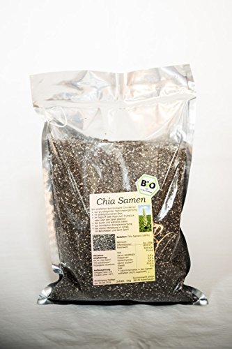Bio Chia Samen, Superqualität Chia Samen (Salvia Hispanica) Chia Samen enthalten wertvolle Omega 3 und Omega 6 Fettsäuren im gewünschten Verhältnis von 3:1. Weiterhin enthalten sie viele wertvolle Vitamine, Mineralien, hochwertige Eiweiße und Ballaststoffe. Die Ballaststoffe und die guten Quelleigenschaften der Chia samen fördern die Verdauung und Darmtätigkeit. Die Samen können beispielsweise über Brotaufstriche, Salate, in Joghurts, Müslis, Smoothies, Säfte, Dressings oder in Backmischungen gestreut werden. Nährwertangaben: je 100 g. Energie: 1832 kJ / 444 kcal. Fett:31,4g. Kohlenhydrate :4,9 g. davon Zucker:0,8 g. Salz: 0 g. Unterschied zwischen Bio- und „nicht-Bio“-Chia Samen: BIO = kein Einsatz chemischer Düngemittel BIO = kein Einsatz von Pestiziden BIO = Öko-kontrolliert durch Kontrollstellen in Deutschland und vor Ort im Herkunftsland Haltbarkeitsdatum bis:12.08.2016